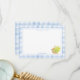Um clássico cartão de agradecimento aquarela xadrez com uma cesta rendada de hortênsias verde lima.