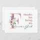 Cartão personalizado de "obrigado por ser minha florista" com um belo design de letra floral. Este elegante cartões de agradecimentos de casamento está escrito em tons de rosa rosa, verde caçador e marfim empoeirados. Apresenta um brilho cor-de-rosa "F", embelezado com um buquê cor-de-rosa e marfim de flores e folhagem. A frase na frente lê "obrigados. por ser. minha florista" em tipografia clássica com uma reviravolta moderna. A parte traseira tem caracteres de estilo rosa e manuscritos e a modelo está configurada para você personalizar (ou excluir) a mensagem, conforme desejar. Procure na nossa loja itens de coordenação.