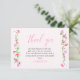 Cartão de agradecimento Pink Wildflower com mensagem de agradecimento personalizada e bordas florais delicadas de lindas flores silvestres cor-de-rosa. Agradecimento é escrito em caligrafia elegante e você pode facilmente personalizar o evento para chá de casal, chá de noiva, brunch de noiva, etc. Design feminino suave com flores silvestres em aquarela delicadas e arejadas em tons de rosa. Design botânico inspirado na natureza com florações românticas de jardim campestre e espigas de flores. Por favor, navegue pela minha coleção Pink Wildflower para encontrar itens correspondentes ou me envie uma mensagem para criar os modelos que você precisa.