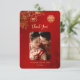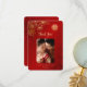 Este cartões de agradecimentos de casamento chinês apresenta flores de arte de linha dourada, um sinal de dupla felicidade dourada artística e palavras de "obrigado você" em um moderno guião manuscrito em um fundo de ximersão vermelho. Com um obrigado de casamento personalizado você escreve, sua foto, seus nomes e data de casamento.
