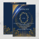 Mostre sua gratidão com este cartão de agradecimento floral azul e dourado, apresentando um fundo azul rico acentuado por flores botânicas douradas luxuosas. Perfeito para temas de casamento clássicos ou modernos, este design personalizável permite que você personalize sua mensagem, mantendo sua suíte de papelaria coordenada e sofisticada.