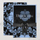 Cartão de agradecimento floral azul e preto. Confira o resto desta elegante coleção de decoração de casamento e lar.