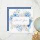 Este cartão de agradecimento elegante apresenta uma moldura floral em aquarela com flores lindas em tons variados de azul, bem como uma escrita em caligrafia delicada.