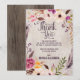 Cartão de agradecimento para chá de bebê com flores em aquarela boho rústicas