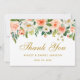 Cartões de agradecimentos de Casamento Dourado Floral de Coral de Watercolor