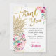 Cartão De Agradecimento Floral de Abacaxi Dourado Rosa Tropical