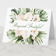 Cartão de agradecimento dobrado tropical apresenta um motivo de aquarela de folhagem e flores exóticas rosa suave. Adequado para qualquer ocasião, incluindo casamentos, chá de noiva, chá de bebê, formatura, aniversários e mais. O interior está em branco para que você possa escrever sua própria mensagem pessoal. Escolha entre uma variedade de tamanhos e personalize a redação na sua escolha de fontes e cores.
