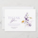 Um cartão de agradecimento lindamente projetado com flores delicadas em tons suaves de roxo, creme e verde. A tipografia elegante e os elementos botânicos criam um visual atemporal e sofisticado, perfeito para casamentos, chá de noiva, chá de bebê ou qualquer ocasião especial. Expresse sua gratidão com estilo com este encantador cartão de agradecimento floral.