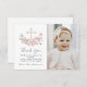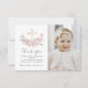 Cartão De Agradecimento Floral Pink Baptism Cross Thank you Photo Card