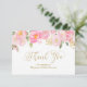 Cartão De Agradecimento Floral Rosa e Dourado com Caligrafia Dourada