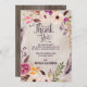 Cartão de agradecimento para chá de bebê com flores em aquarela rústica boho