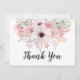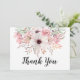 Cartões de agradecimento florais rústicos em aquarela com escrita moderna 'Obrigado' em preto na frente. Adicione facilmente sua mensagem personalizada no verso do cartão.