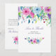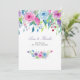 Cartão de agradecimento floral em aquarela com ultravioleta e tons de roxo e verde-sage. As flores incluem hortênsias, lavanda, peônias e rosas.