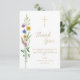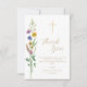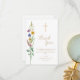 Este cartões de agradecimentos floral do Batismo apresenta flores silvestres e uma cruz com a tipografia do na moda. Facilmente personalizável. Original Watercolor © Michele Davies.