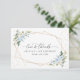 Adicione um toque pessoal à sua celebração de aniversário com estes itens de na moda e festa memoráveis! Design apresenta flores azuis e brancas de aquarela, verde, confete dourado e moldura dourada sobre fundo branco.