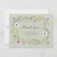 Estes bronzeados cartões de agradecimento apresentam um quadro ilustrado, colorido rosa, laranja, roxo e branco, flores silvestres e folhas verdes em um fundo verde macio. Um design simples que é simultaneamente boho e elegante.