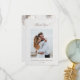 Flores brancas esculpidas rosas 3D acima de uma foto personalizada em um fundo branco. Com uma escrita caligráfica elegante.