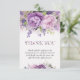 Cartão De Agradecimento Flores de Jardim Roxas e Rosas para Chá de Noiva