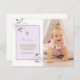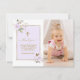 Design de cartão encantador com cor d'água, flores roxas leves e folhas verdes delicadas e cor d'água, flores esboçadas douradas falsas, uma cruz dourada falsa, forma púrpura clara com estrutura falsa de ouro. Use a ferramenta Personalizar para adicionar suas informações. Para itens correspondentes, visite minha coleção de celebrações Baptism/Christening.