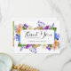 As flores silvestres do prado criam uma bela moldura na frente deste cartão de agradecimento de chá de panela. Flores vermelhas, roxas, rosadas, azuis e brancas criam um colorido display. O verso contém sua foto à esquerda e o sentimento de agradecimento à direita. Este cartão de agradecimento de chá de panela faz parte da coleção Timeless Wildflower. Ela contém todos os modelos de casamento DIY necessários para criar um belo e acessível conjunto de papelaria de chá de panela e para personalizar seu chá.
