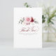 Cartão de agradecimento pequeno e elegante com flores vermelhas borgonha e rosa em aquarela para casamento, chá de noiva, festa de noivado, etc.