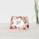 Design elegante com flores vermelhas profundas e folhagens pendentes com Agradecimento. No interior, há um padrão floral semelhante na parte inferior do cartão.