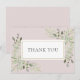 Cartão de agradecimento com folhas de eucalipto verde rosa desbotado com folhas delicadas de aquarela emoldurando sua mensagem de agradecimento definida em texto elegante. Você pode personalizar com sua própria mensagem de agradecimento no verso ou, se preferir, adicionar sua própria mensagem manuscrita, basta excluir o texto. Uma maneira perfeita de dizer obrigado! Projetado por Thisisnotme©