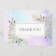 Cartão de agradecimento de folhas de verdura holográfica elegante com folhas delicadas em aquarela emoldurando sua mensagem de agradecimento em um texto elegante. Você pode personalizar com sua própria mensagem de agradecimento no verso ou, se preferir, adicionar sua própria mensagem manuscrita, excluindo o texto. Uma maneira perfeita de dizer obrigado! Criado por Thisisnotme©