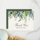 Lindo cartão de agradecimento em aquarela rústica com folhas verdes e fundo bege suave. Adicione seu próprio texto