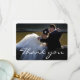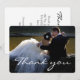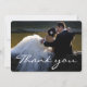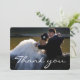 Cartão de agradecimento de foto de casamento com fonte de letra cursiva branca elegante. Personalize-o com seu cartão de casamento favorito. Contém uma mensagem de agradecimento no verso do cartão que você pode alterar ao seu gosto.