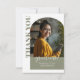 Parabéns! Este Cartões de agradecimentos de Graduação de Foto do Arch Verde Moderno apresenta uma foto do formando, e um simples tipo verde e branco para criar um design clássico, porém moderno. Modifique esta modelo inserindo uma foto e editando as informações nas caixas de personalização para criar suas próprias notas personalizadas!