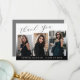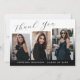 Este moderno e elegante cartão "Obrigado" com 3 fotografias, apresenta elementos design do texto moderno fundidos com um elegante roteiro de caligrafia. Suas fotos de formando são exibidas na frente do cartão enquanto a parte traseira do cartão oferece espaço de texto personalizado para um obrigado que você envia ou pode ser deixado como vazio se você quiser escrever sua mensagem manualmente. Um gradiente branco chic desaparece para ficar preto na frente da placa com cinza de platina na parte traseira ou personalizá-los facilmente para cores de sua escolha.