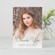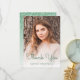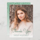Obrigado de aniversário moderno da Tendy, com uma foto vertical personalizada. As palavras "Obrigado" aparecem na sobreposição de script de escrita manual verde, com o nome abaixo na fonte sans serif. Substitua facilmente a imagem de exemplo pela sua foto favorita. Uma tela de gradiente branco ajuda a garantir os pop de texto. O verso apresenta uma borda verde de brilho inverso em um fundo ombre. Personalize o texto com o seu próprio obrigado, ou exclua-o para oferecer espaço para mensagens escritas manualmente individuais.