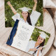 Envie à sua família e amigos um agradecimento especial de formatura com estes cartões de foto personalizados. À esquerda, as palavras "obrigado" aparecem em tipografia de letra cursiva elegante em cinza carvão sobre um fundo branco, sobre uma mensagem breve e editável de agradecimento aos convidados da sua festa de formatura em fonte copperplate, com o seu nome abaixo. Uma borda de ágata em aquarela azul-marinho decorada com brilho dourado falso adorna a borda esquerda. Adicione uma foto vertical na frente e uma segunda foto horizontal no verso do cartão.