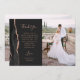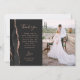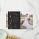 Mande a sua família e amigos um obrigado especial de casamento com esses cartões com fotos personalizados. À esquerda, as palavras "obrigado você" aparecem em uma elegante tipografia de escrita manual de cor rosa em um fundo preto de slate sobre uma breve e editável mensagem de obrigados aos convidados de casamento em letra copperplate, com seus nomes abaixo. Uma aquarela preta agata borda aparada com rosa dourado falso decora a borda esquerda. O verso fornece espaço para uma segunda foto horizontal.