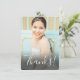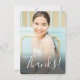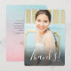 Este simples e elegante cartão de agradecimento com foto apresenta uma foto na frente com sangria total, com um texto elegante que diz "Obrigada!". Um bonito design ombre de aquarela pintado à mão em aqua e rosa coral adorna a parte de trás do cartão. Modelos de texto estão incluídos na parte de trás para personalização. Perfeito para enviar após uma festa de aniversário para uma garota pré-adolescente ou adolescente! Para pedidos de design personalizado ou produto, por favor entre em contato comigo (Tracey) em orabellaprints@outlook.com.