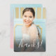 Este simples e elegante cartão de agradecimento com foto apresenta uma frente com foto que ocupa toda a área, com um texto elegante que diz "Obrigada!". Um bonito design ombre de aquarela pintado à mão em aqua e rosa coral adorna a parte de trás do cartão. Os modelos de texto estão incluídos na parte de trás para personalização. Perfeito para enviar após uma festa de aniversário para uma pré-adolescente ou adolescente! Para pedidos de design personalizado ou produto, por favor entre em contato comigo (Tracey) em orabellaprints@outlook.com.