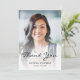 Simples obrigado de graduação moderna - sua placa com uma foto vertical personalizada. As palavras "Obrigado" aparecem na cobertura preta do script casual de escrita manual, com o nome do formando e o ano de graduação abaixo na fonte sans serif. Substitua facilmente a imagem de amostra pela foto do seu próprio formando. Uma tela de gradiente branco ajuda a garantir os pop de texto. Personalize o texto dourado no verso com seu próprio obrigado.