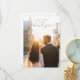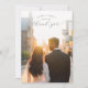 Este cartão de agradecimento de casamento apresenta uma cena romântica com duas figuras em silhueta andando de mãos dadas contra o pano de fundo de um pôr do sol urbano, criando uma atmosfera quente e íntima. O design utiliza uma paleta de cores douradas e âmbar, realçada por tons suaves de azul e cinza para contraste, dando-lhe um toque contemporâneo e atemporal. Fontes elegantes de texto e impressão adicionam sofisticação, enquanto a frase "obrigado" é elegantemente escrita em letra cursiva fluida, transmitindo gratidão e afeto. Perfeito para expressar agradecimentos sinceros após o seu dia especial, este cartão combina fotografia artística com aprimoramento digital para capturar um momento sonhador e sereno.