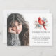 Elegante cartões de agradecimentos de compaixão de sotaque apresentando uma ilustração de aquarela de um cardeal vermelho. Abaixo está um nome personalizável e um ano, juntamente com uma mensagem de obrigado personalizada. Cor branca ou personalizada de volta. Carregue sua própria foto com o modelo de foto.