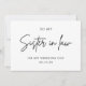 Capture o momento e expresse sua gratidão com nossa Foto Mínima para minha Irmã em Direito no meu Cartões de agradecimentos de Dia de Casamento. Esta placa elegantemente simples apresenta um design limpo e minimalista com espaço para uma foto apreciada, acrescentando um toque pessoal à sua mensagem sincera. A tipografia refinada e o layout subestimado garantem que suas palavras de obrigados se destacam, fazer-a como uma marca significativa para sua irmã. Personalize-o com uma nota e fotografia especiais para criar uma expressão verdadeiramente única e memorável do seu apreço. Para designs personalizados e mais artigos de noiva, entre em contato conosco ou nos siga para obter as atualizações mais recentes.