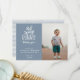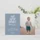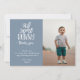 Cartão de agradecimento de foto "algum coelho" fofo, em azul empoeirado. Tipografia branca com sotaque de orelha de coelho e padrão de trança de cesta desenhado à mão no verso.
