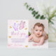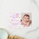 Cartão De Agradecimento Foto de aniversário de 1 ano de menina rosa roxo b