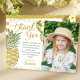 Cartão de Agradecimento de Foto de Aniversário de Abacaxi com Brilho Dourado Tropical