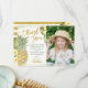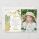 Cartão De Agradecimento Foto de Aniversário de Abacaxi com Brilho Dourado