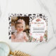 Mostre seu apreço no estilo de verdadeira vaquinha com nosso Cartões de agradecimentos de Foto de Aniversário da Cowgirl! Esta carta adorável apresenta uma mistura encantadora de arcos cor-de-rosa, padrões de impressão de vaca, e sotaques ocidentais rústicos, capturando perfeitamente o espírito do aniversário de sua garotinha. Personalize o cartão com uma fotografia fofa da aniversariante e uma mensagem sincera de obrigados. Mande seus convidados com um pouco de talento ocidental e muito amor!