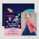 Cartão de agradecimento de foto de aniversário do astronauta rosa no espaço sideral