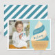 Projetados para combinar com nossos convites de festa de aniversário infantil de sorvete soft serve, esses cartões de agradecimento fofos apresentam um cone de sorvete de blueberry e baunilha com "obrigado" e uma assinatura em letras estilo retrô vintage. Personalize com uma foto da festa de aniversário e uma mensagem pré-impressa.