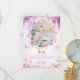O design apresenta cores pastéis como lavanda, menta e rosa bebê, adornado com flores de wisteria suaves e borboletas divertidas. Esses elementos criam um sentimento suave e mágico. O convite apresenta as palavras "obrigado" em letra de glitter dourado brilhante, adicionando um toque de brilho e diversão. Este design simples, mas encantador, é perfeito para uma celebração de aniversário alegre como 1º aniversário, 7º aniversário e mais.
