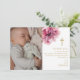 Cartão De Agradecimento Foto de Batismo com Flor de Água Rosa